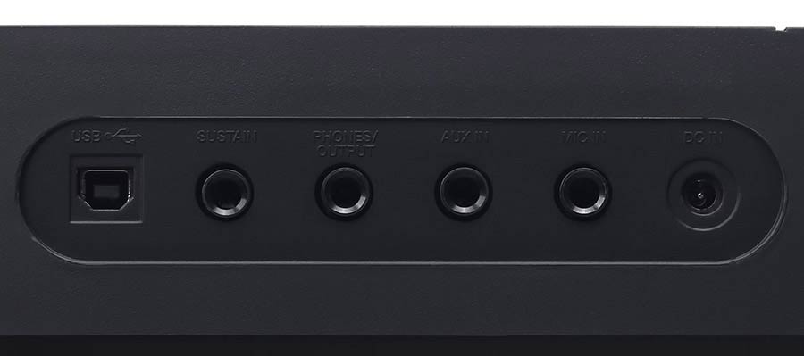• Connexions : 1 x USB-B (MIDI et audio), prise casque / sortie (1 x 1/4″), prise d’entrée (1 x 1/4″), prise microphone (1 x 1/4″)et pédale (sustain)