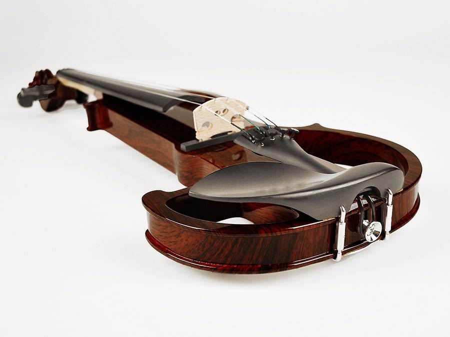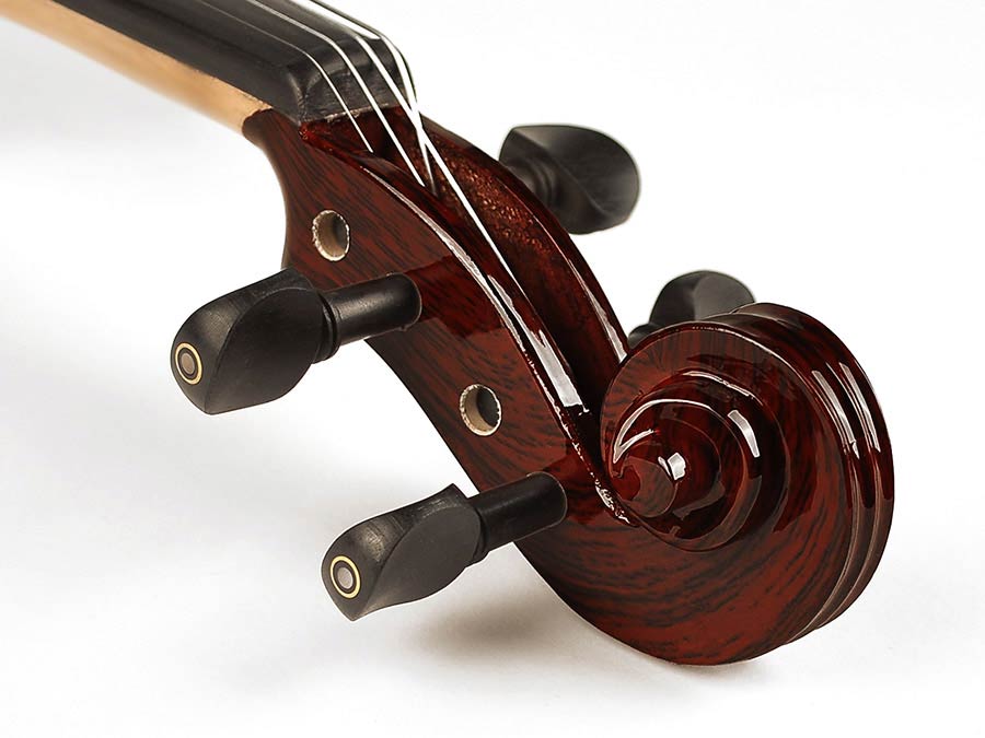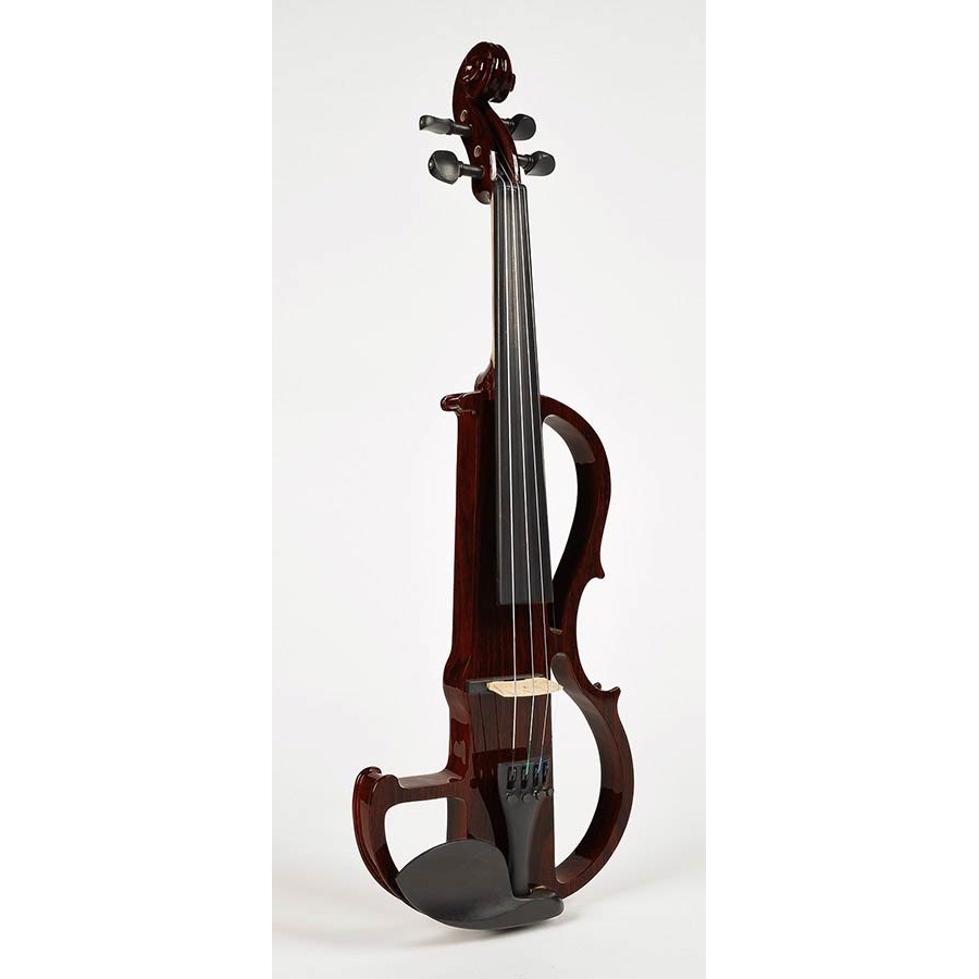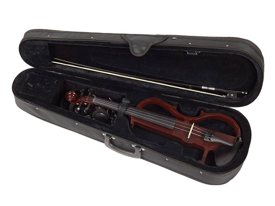 Violon électrique au design traditionnel, avec préampli, archet, étui, casque, coloris bois verni