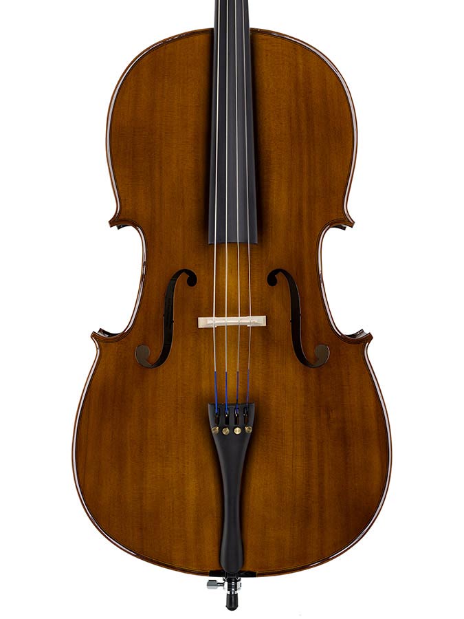 Ensemble violoncelle 4/4 prêt à l’emploi, tout massif, garnitures en palissandre, archet et housse rembourrée inclus.